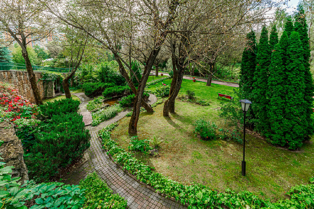 В комплексе огороженная территория с ландшафтным дизайном, корты, детская площадка, гостевой паркинг, круглосуточная охрана и видеонаблюдение.